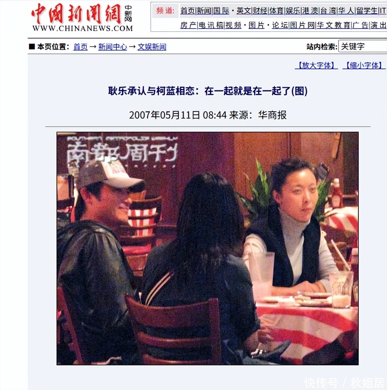 2007年两人恋情浮出水面耿乐面对媒体坦然回应